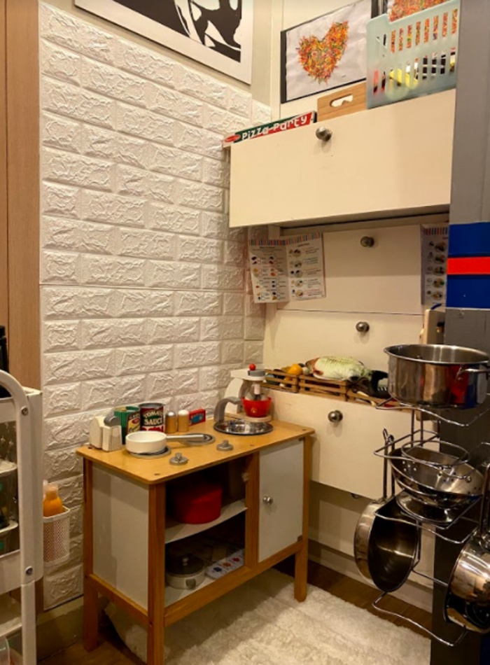 Ngoài ra, chị còn mua thêm chiếc xe đẩy, trang trí lại góc bếp đồ chơi để cậu bé luôn cảm thấy thích thú khi hoạt động, vui chơi trong căn phòng của mình.
