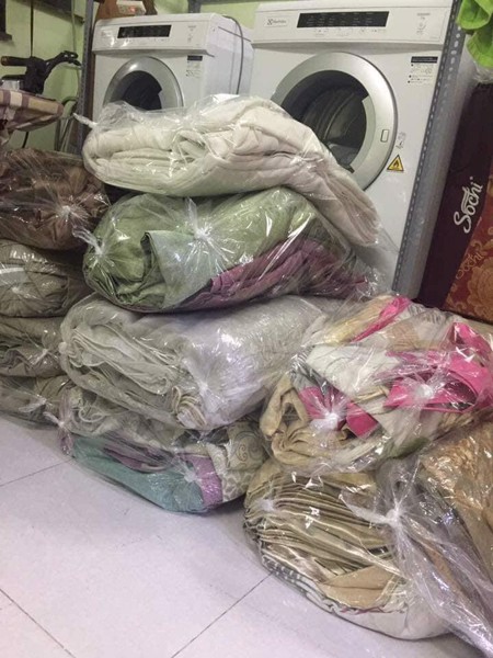 Bước 3: Giặt , làm sạch màn bằng máy giặt công nghiệp và các chất giặt rèm cửa chuyên dụng (mỗi loại rèm có cách giặt khác nhau). Giặt rèm của Hà Phương sử dụng nước xả thơm trong quá trình giặt rèm cửa.